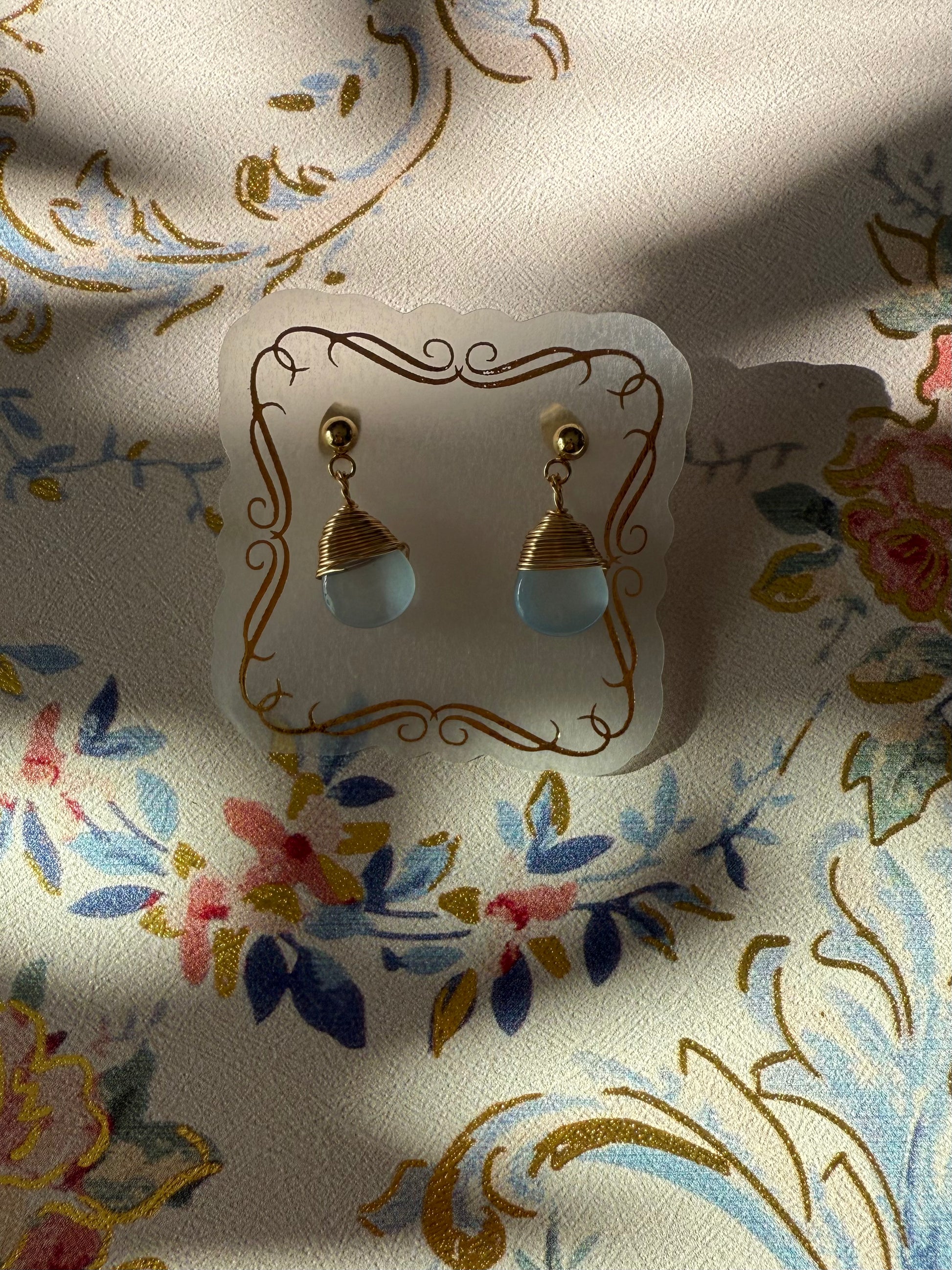 Gold plated studs, light blue December sapphire colored, easy to wear and very trendy earrings. Minimalist design, and incredibly light weight. Match it to any outfit, makes for the perfect gift. Noise free, with gold plated backs included.