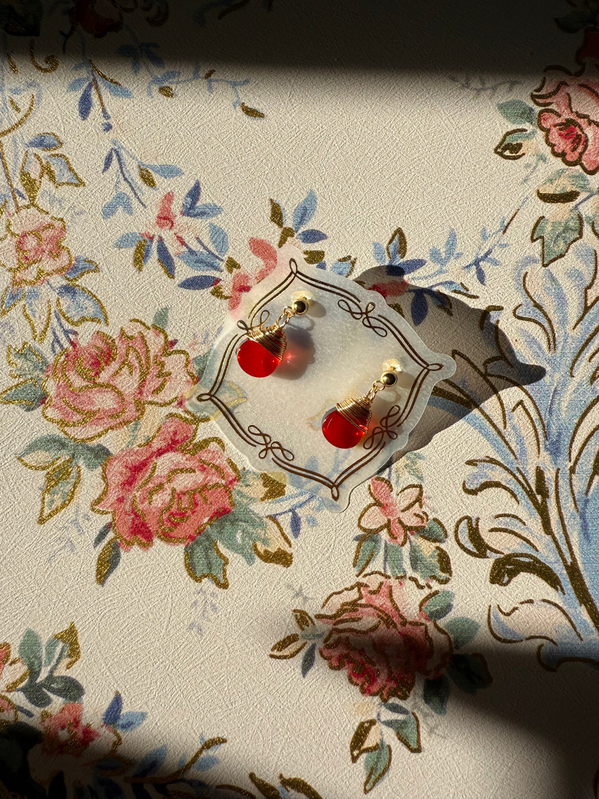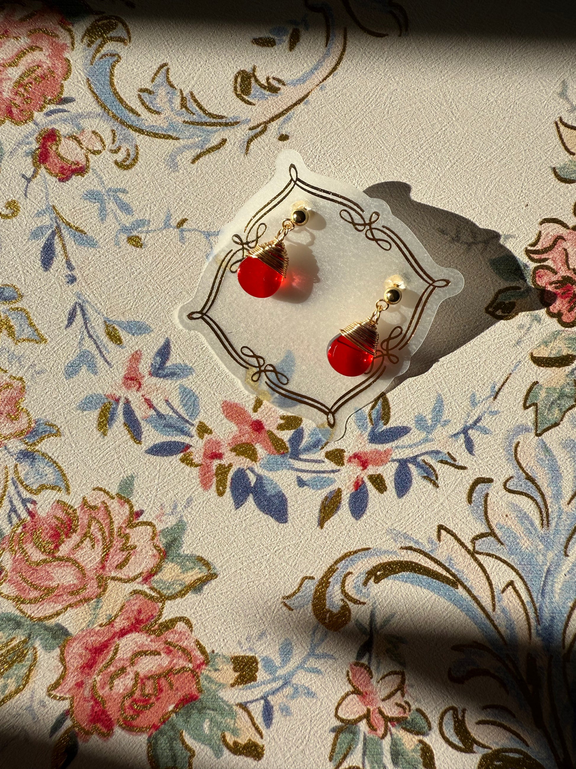 Gold plated studs, red ruby colored, easy to wear and very trendy earrings. Minimalist design, and incredibly light weight. Match it to any outfit, makes for the perfect gift. Noise free, with gold plated backs included.