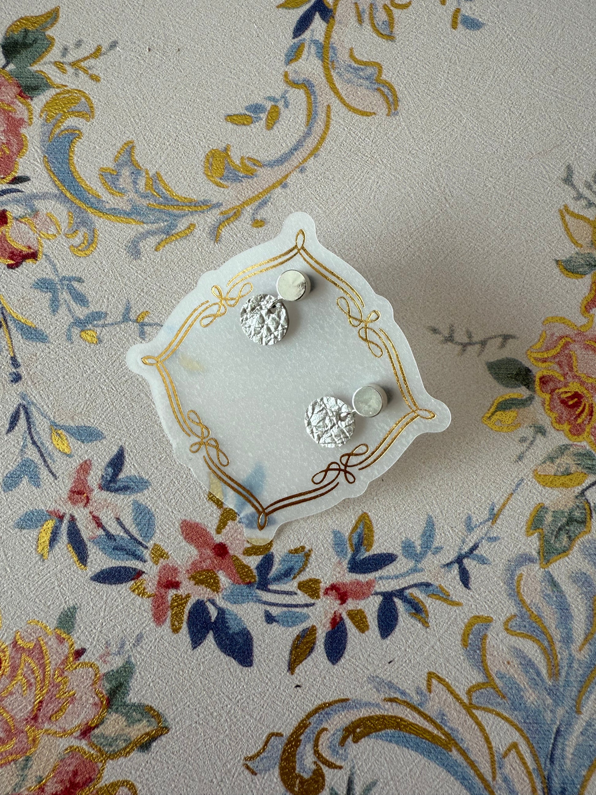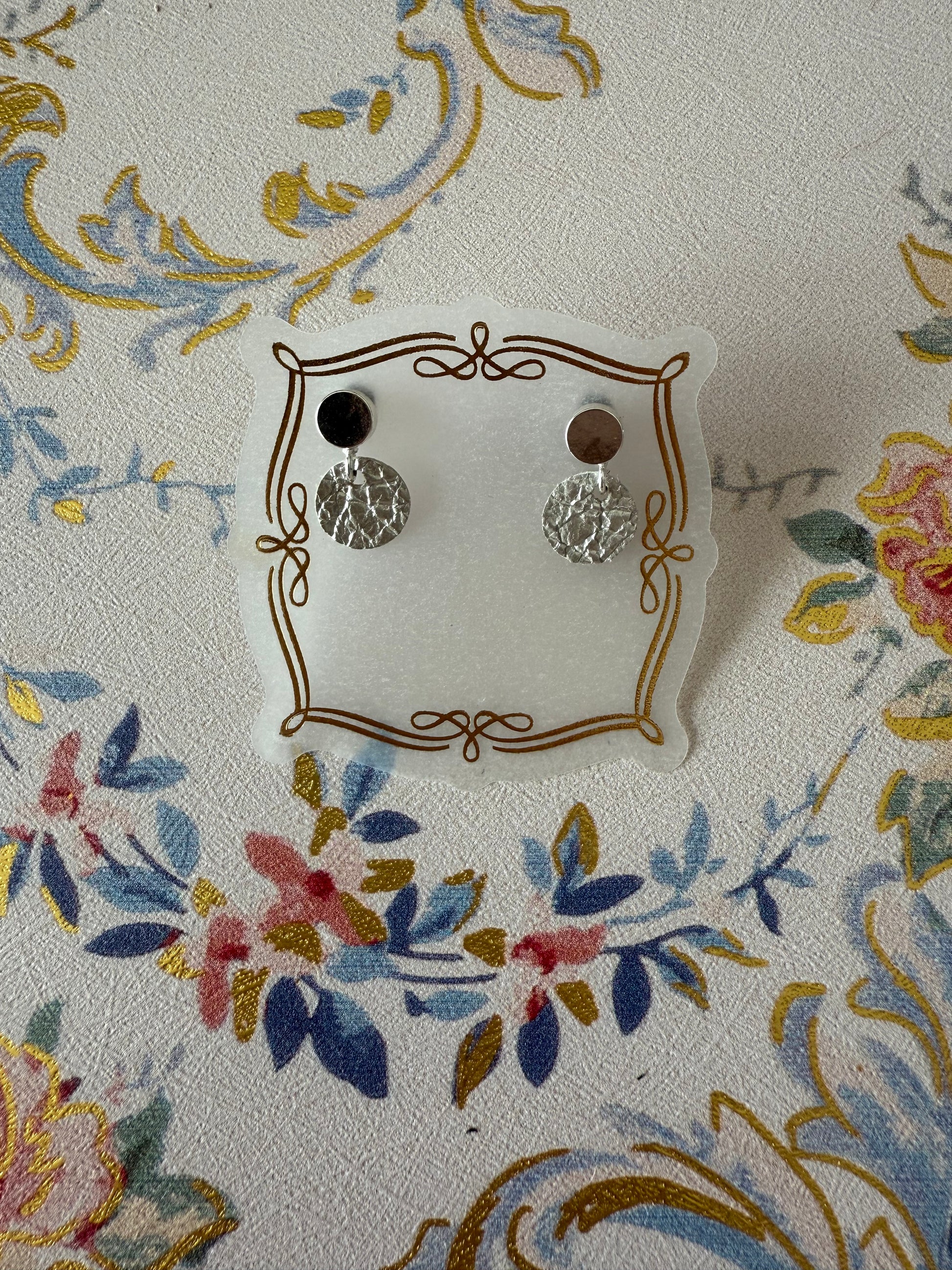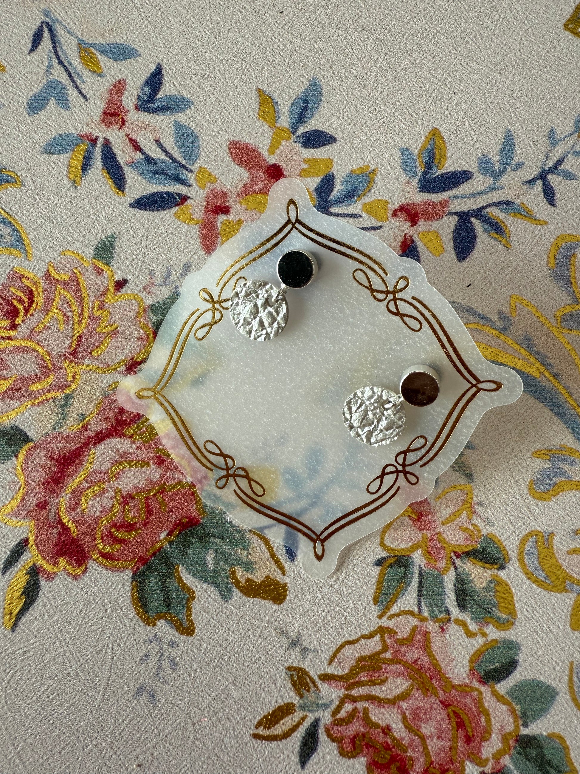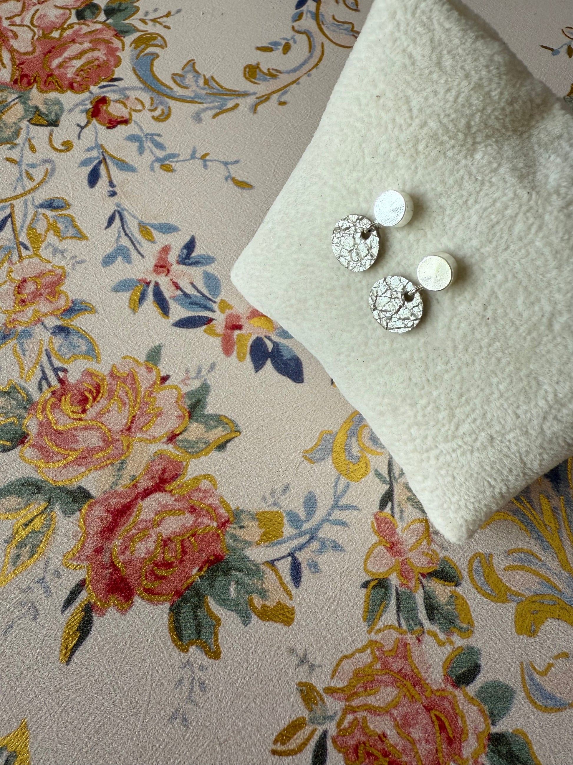 Small, dainty silver rusted leather earrings, genuine silver leather round earrings, easy to wear and very trendy. Minimalist design, and incredibly light weight. Match it to any outfit, makes for the perfect gift. Noise free, with silver plated backs included.