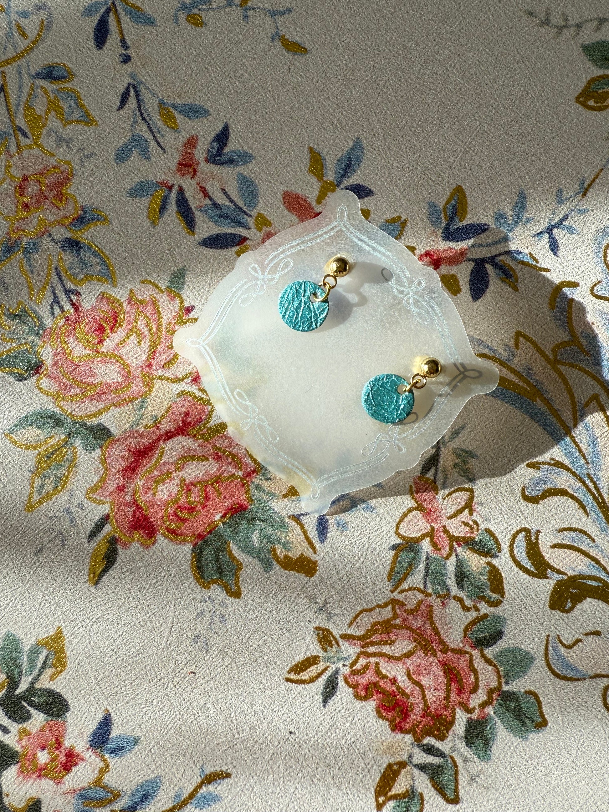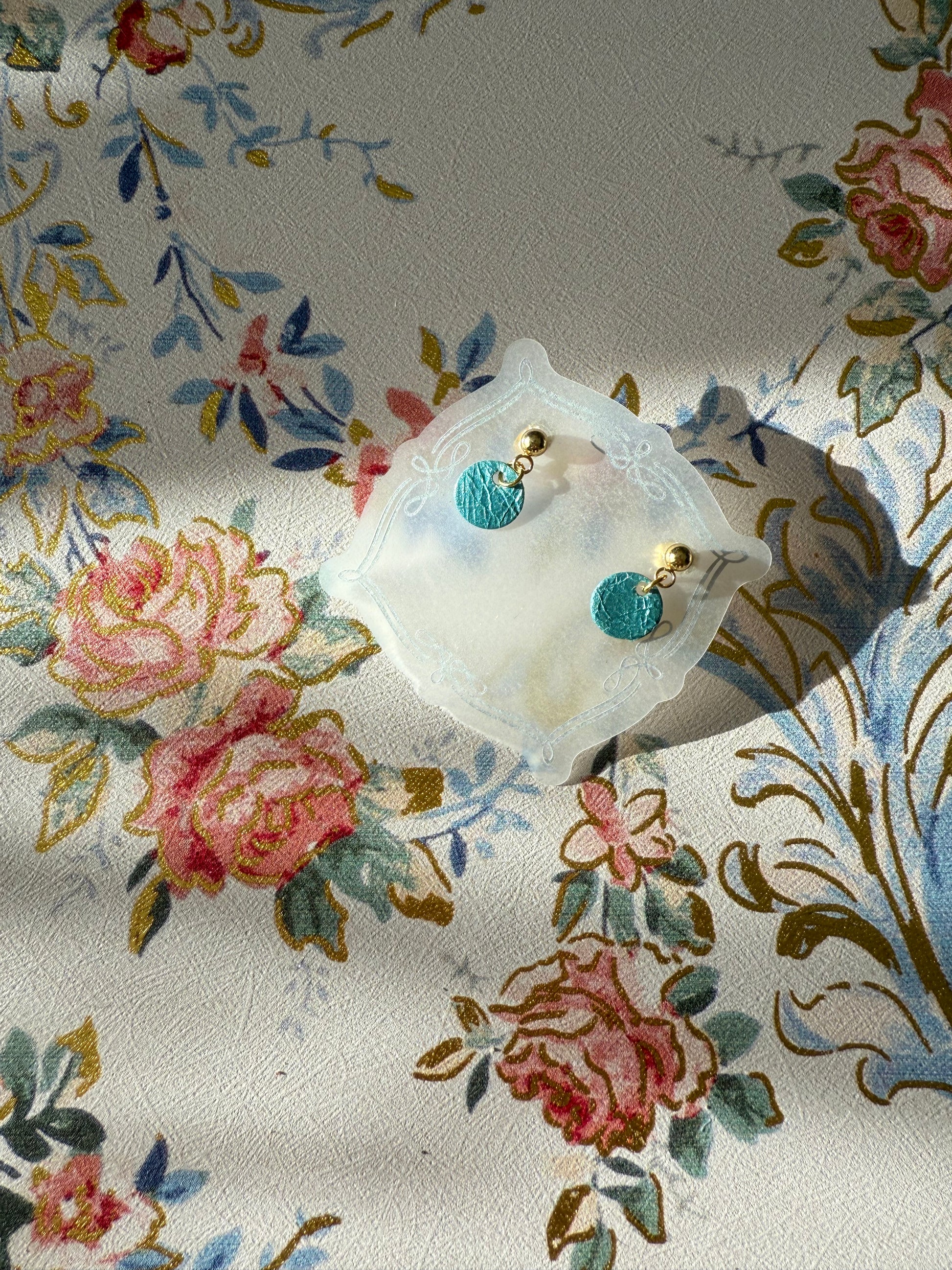 Gold plated studs, genuine turquoise leather round earrings, easy to wear and very trendy. These are simple and very small. Minimalist design, and incredibly light weight. Match it to any outfit, makes for the perfect gift. Noise free, with gold plated backs included.